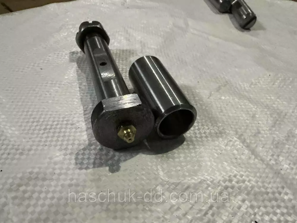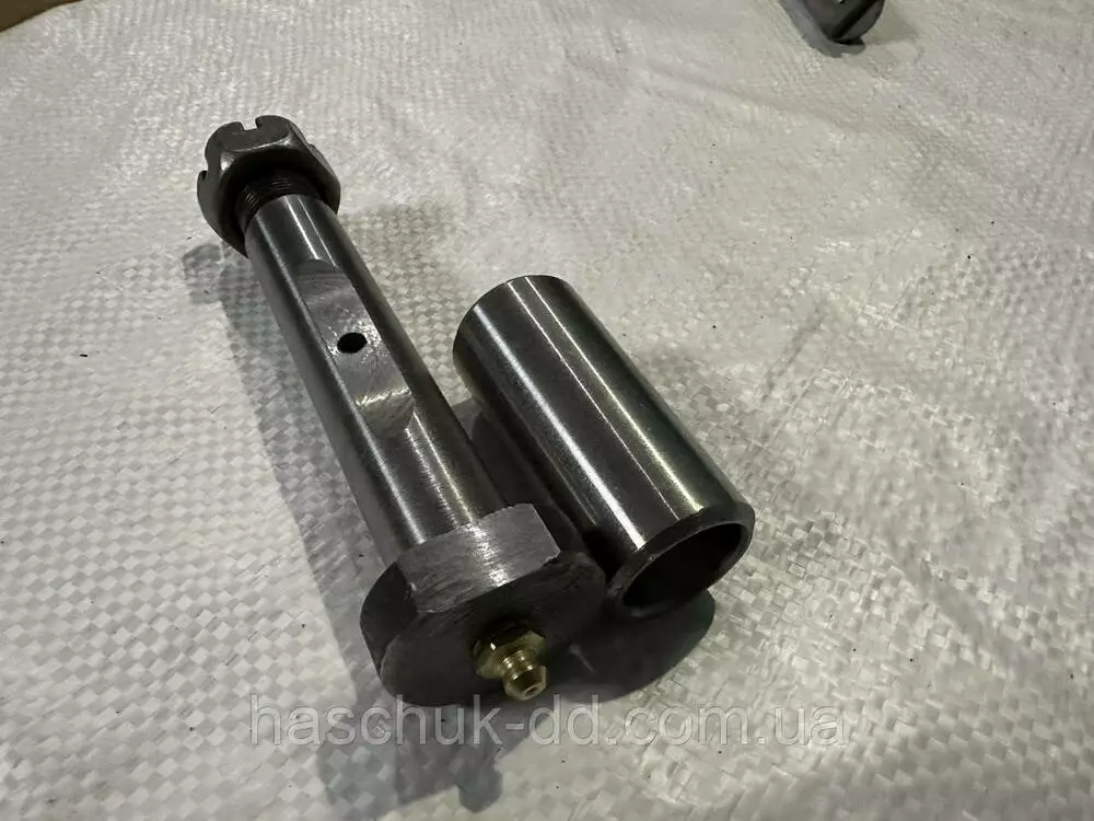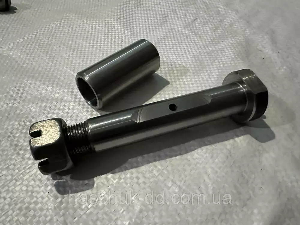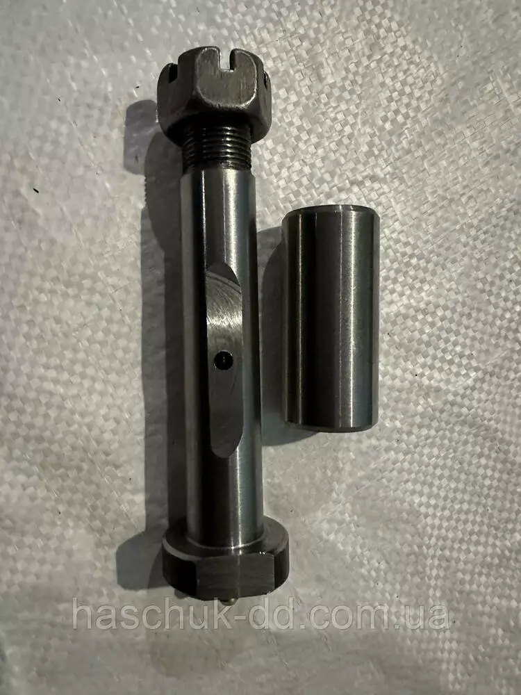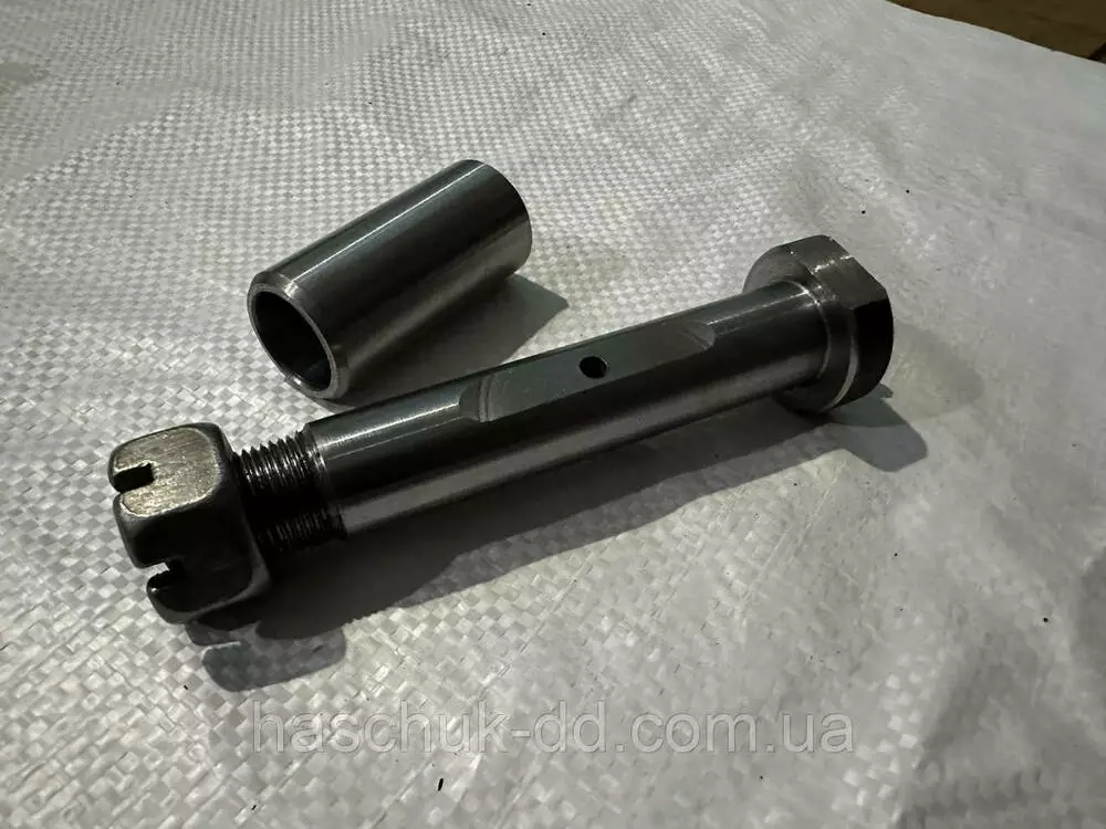 Палец рессоры 2ПТС-4, ( с втулкой, под гайку). В комплекте палец рессоры с резьбой 1шт, гайка корончатая 1шт, втулка рессоры 1шт.