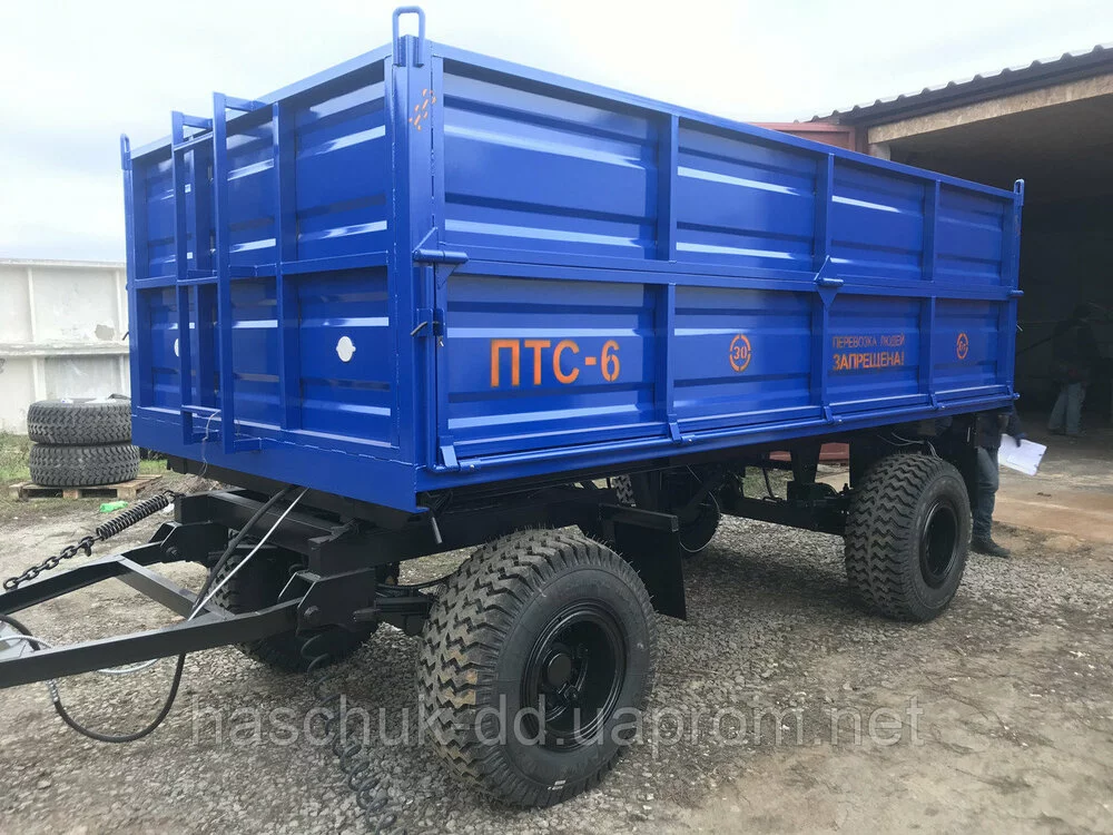 Благодаря надежной и устойчивой подвеске, прицеп 2ПТС-6 может использоваться как в полевых условиях, так и на дорогах общего пользования, а продуманная конструкция бортов позволяет перевозить даже сыпучие грузы (за исключением булыжника и скальных пород).
